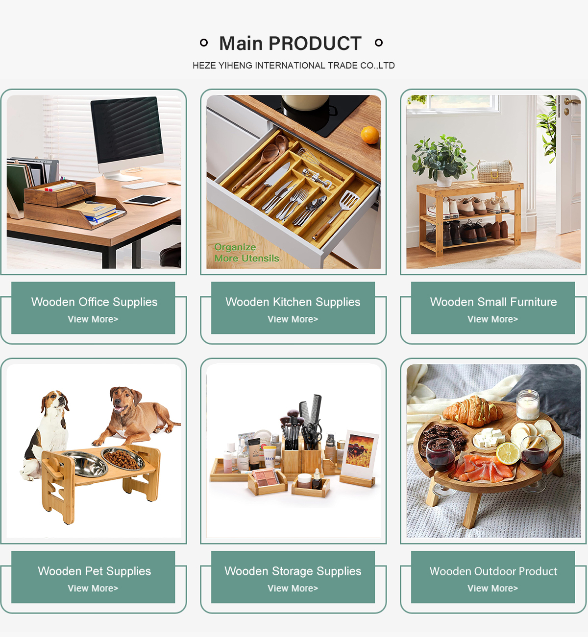 Productos principales:Caja de almacenamiento de madera, muebles pequeños de madera, suministros de madera para mascotas, suministros de oficina de madera, utensilios de cocina de madera